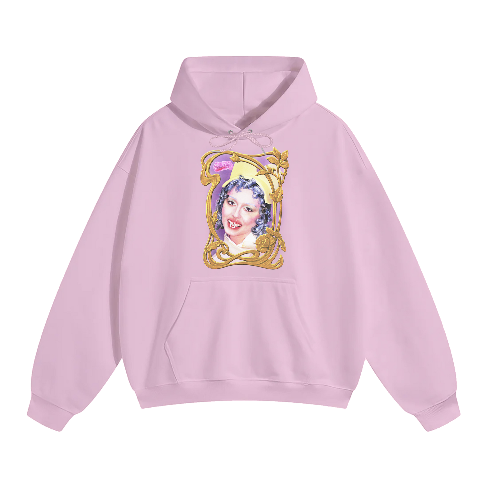The Bucktooth Smoochies hoodie features artwork from Ashnikko's latest album, Smoochies, across the front and back.